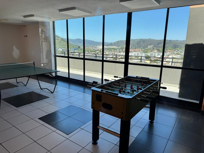 Económico departamento se arrienda, con excelente locomoción afuera del Edificio, a minutos del centro de concepción y sus alrededores supermercado, colegios, universidades, supermercados1 dormitorio con baño a parteCocina con mueblesCómodo living-comedor con balcón 1 estacionamiento techado1 bodegaConserjería 24 hrs , salón de evento, gimnasio, sala de juegosDisponibilidad inmediataPrecio de arriendo con gastos comunes incluidos 420.000.- mil pesos mensuales Interesados contactarGestion Inmobiliaria Colombo y CIA